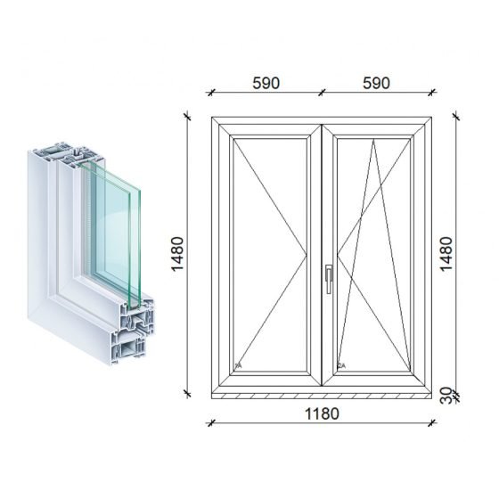 70mm beépítési mélységű, a tokban és a szárnyban horganyzott acél merevítéssel,, masszív profilrendszer, elegáns íves vonalvezetésű tokkal, íves szárnnyal és íves üvegezőléccel