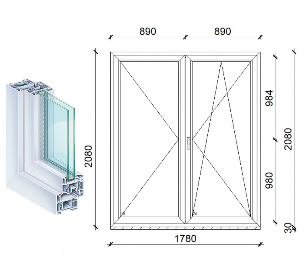 76mm beépítési mélységű, acél merevítéssel, masszív profilrendszer, elegáns szögletes vonalvezetésű tokkal, szögletes szárnnyal és üvegezőléccel